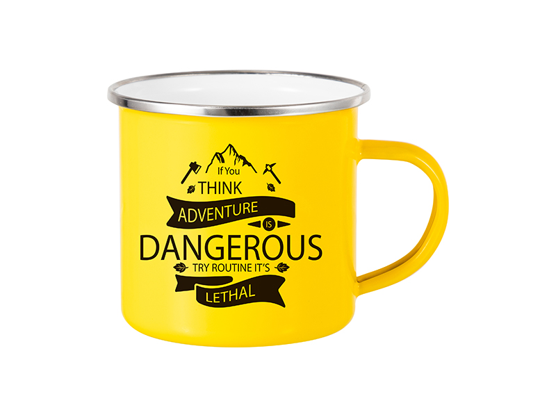Taza Esmaltada Base Plana 12oz - Amarillo